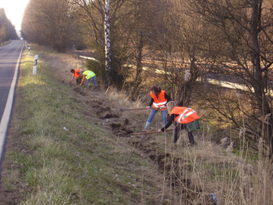 Notzäunung entschlossen. Seitdem organisieren wir regelmäßig im Frühjahr Zaunmaterial und Stangen und machen uns ans Gräben ziehen und Zaun setzen um wenigstens den meistfrequentierten
