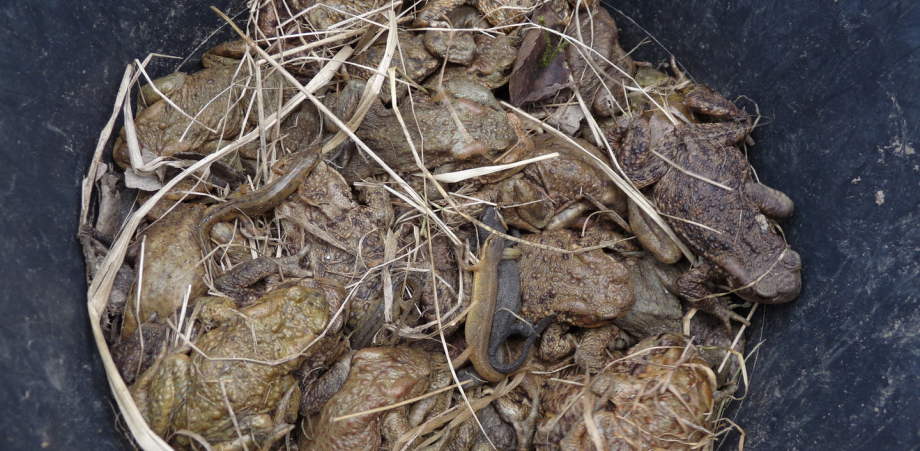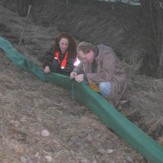 Neben dem Aufstellen des Zaunes besteht die jährliche Hauptarbeit in der zweimaligen täglichen Kontrolle der eingegrabenen Fangeimer. Jeden Tag früh und nachmittags werden die an den Endpunkten eingegrabenen Eimer von uns kontrolliert und die dort gefangenen Tiere sicher auf die andere Straßenseite gebracht. Der Kontrollzeitraum erstreckt sich je nach Witterung von Ende Februar/ Anfang März bis in den Mai.