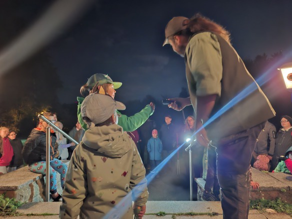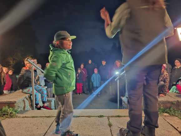 Mit verschiedenen Maßnahmen, wie der Kartierung und Überwachung von Winterquartieren, den Bau von Fledermauskästen und dem Schutz und Erhalt von Lebensraumstrukturen setzen sich die NaturFreunde aktiv für die Fledermäuse ein. Als Einstieg in die Bat Night 2025 informierte Naturschutzgruppenleiter Andreas Hofmann über die Lebensweise dieser bedrohten Flugsäuger. „Fledermäuse“ so Hofmann „sind faszinierende und v.a. harmlose Lebewesen, kein anderes Säugetier schafft es, aktiv zu fliegen und ihr Echolotsystem, mit dem sie sich in der Dunkelheit orientieren und Beute jagen kann man zu Recht als „High Tech“ bezeichnen. Highlight war dann natürlich die Wanderung mit dem Bat-Detektor, der die Ultraschallrufe der kleinen Flatterer hörbar machte. Einmal im Detektor geordet konnten die flinken Flugkünstler im Schein des Handscheinwerfers schnell ausgemacht werden. Ein eindrucksvolles Erlebnis gerade für die teilnehmenden Kinder, wenn z.B. die Wasserfledermaus dicht über der Wasseroberfläche nach Mücken dahin jagt.