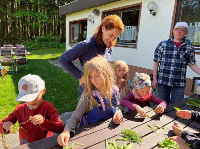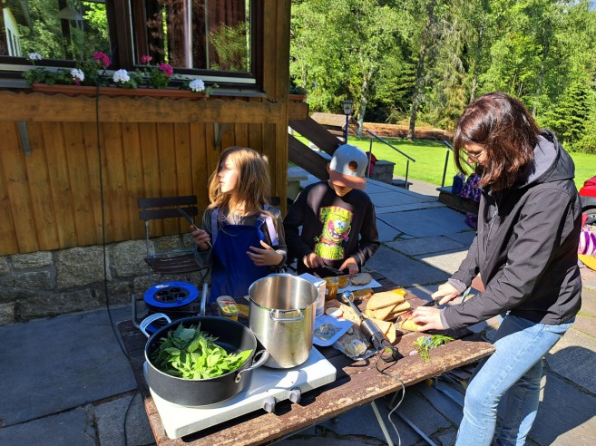 In vielen heimischen Wildkräutern stecken gesunde Inhaltsstoffe und richtig zubereitet schmecken sie auch noch lecker. Aber wer in der Natur auf einen Erntespaziergang gehen möchte, sollte die einzelnen Arten gut kennen, damit nicht Ungenießbares oder gar Giftiges im Korb landet. Die Umweltforscher sind mit unserem Naturschutzgruppenleiter rund ums Naturfreundehaus auf Sammel-Exkursion gegangen um ihren fund anschließend zu einem schmackhaften Wildkräuter-Menü zu verarbeiten.